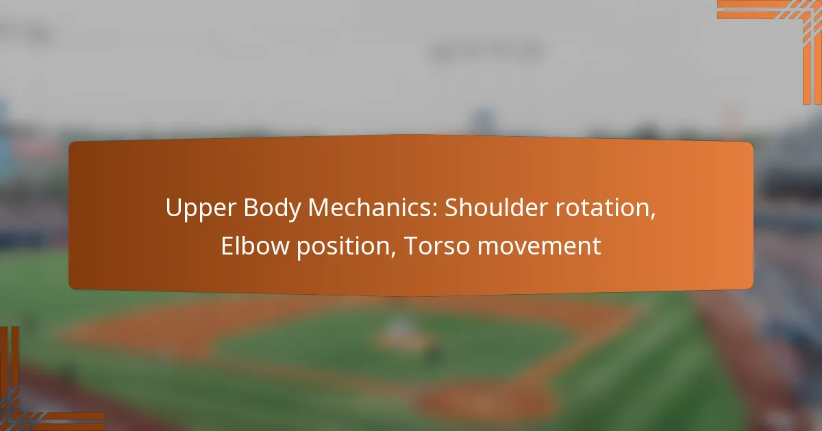 Upper Body Mechanics: Shoulder rotation, Elbow position, Torso movement